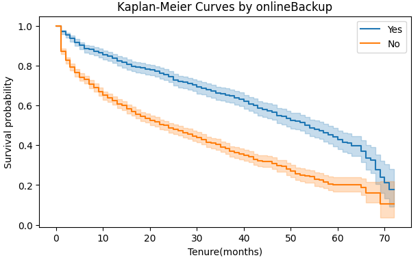 | onlineBackup_Yes | 0.81 | 2.25 | <0.005 | strongly prolongs retention time |